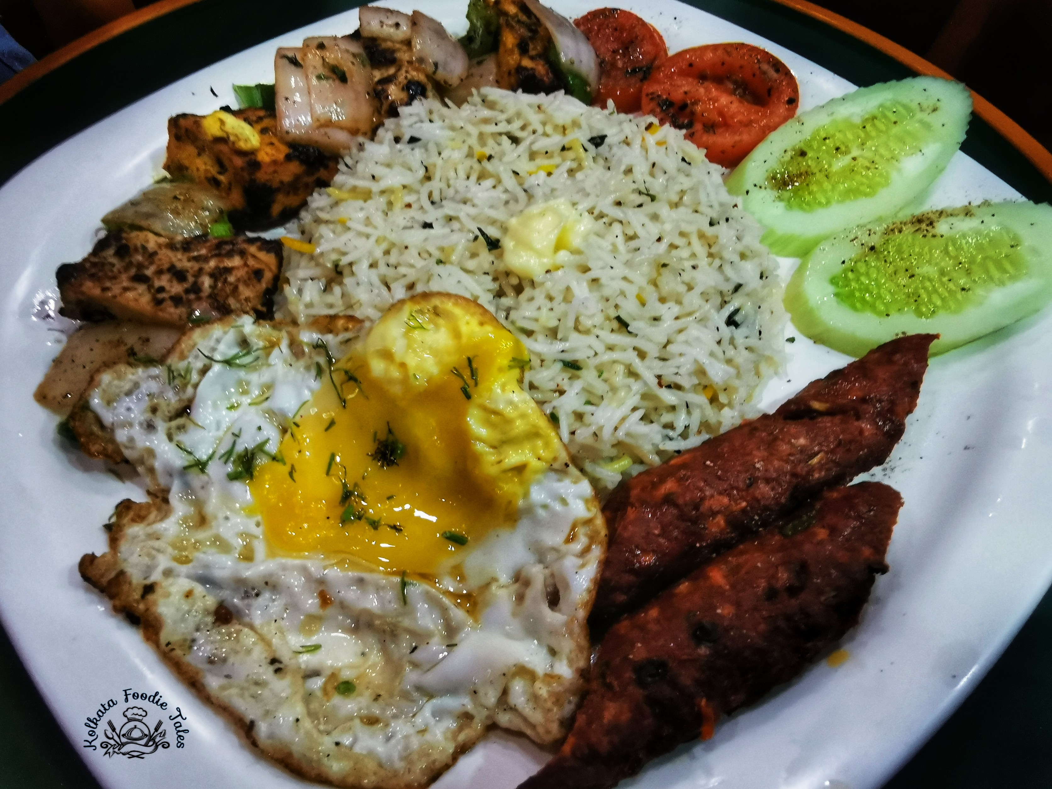 8. Chello Kebab – Herbed Rice topped with a piece of Butter slice served with grilled veggies, two pieces of Mutton Seekh Kebab , a Stick of Chicken Kebab and a Egg Poach and Some veggies. Its Tasted So Good. one Plate of it is enough for 2 tummies.