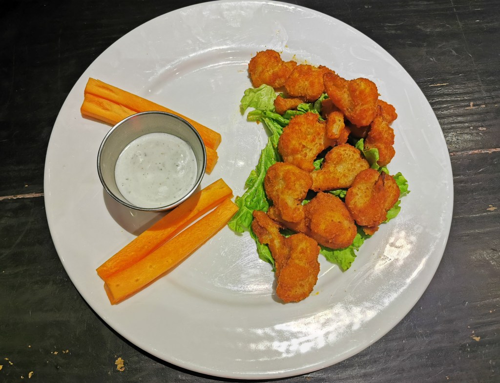 1. Buffalo Cauliflower Wings : Hand Breaded Fried Cauliflower Wings tossed in Classic Buffalo Sauce. Served with a Dip. Priced at – 465