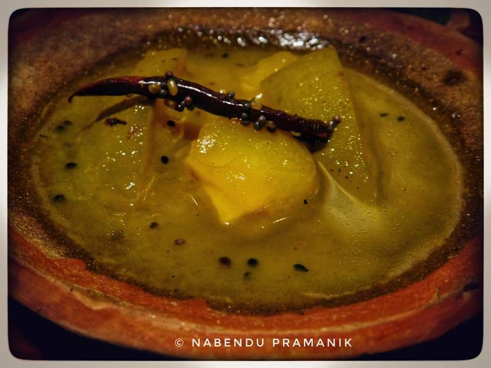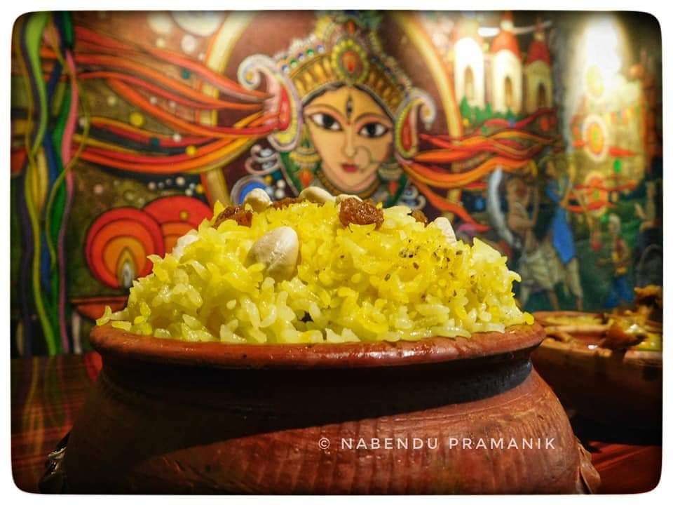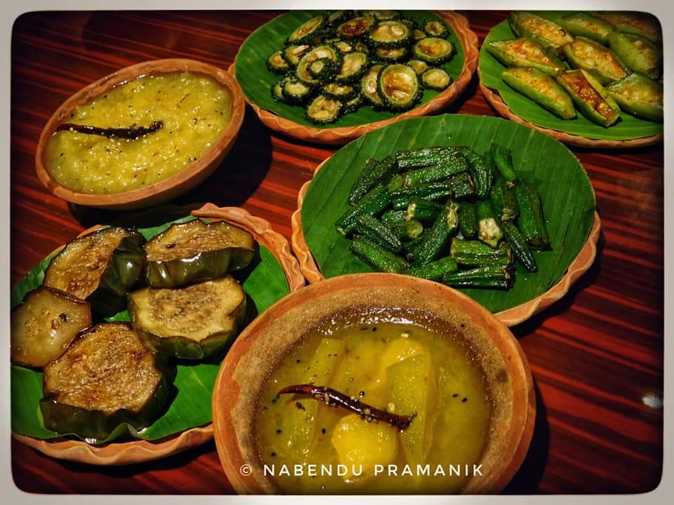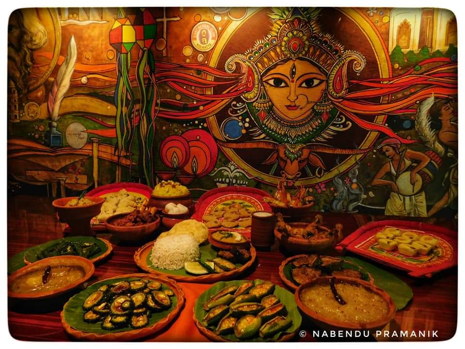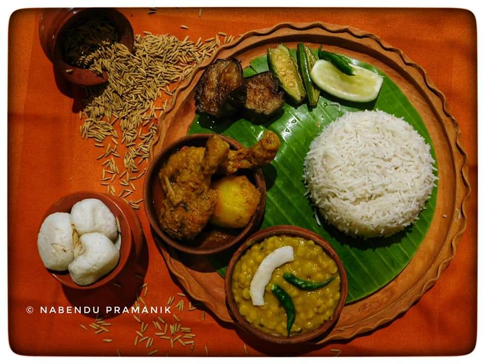 শুরুতেই হাজির ঘোল মহাশয়। এই প্রখর গরমের হাত থেকে বাঁচতে উনি একমাত্র ভরসা। প্রাণে একটু স্বস্তি ফিরতেই হাজির আমাদের সবার প্রিয় বাঙালির রোমিও ও জুলিয়েট স্বয়ং লুচি ও ছোলার ডাল। তাদের সঙ্গ দিতে হাজির বেগুন ভাজা, ঢেঁড়স ভাজা, উচ্ছে ভাজা এবং পটল ভাজা। একি বাঙালির খাওয়া দাওয়ার কথা বলা হচ্ছে অথচ আলু পোস্ত না থাকলে চলে নাকি। সুতরাং গরম ভাতের সঙ্গে সঙ্গ দিতে চলে এলো আলু পোস্ত এবং কষা মুরগি। কিন্তু নববর্ষ হচ্ছে অথচ মাছ থাকবে না তা হয় নাকি!! মনে করার সঙ্গে সঙ্গেই এসে হাজির হলো আপামর বাঙালির প্রিয় চিংড়ির মালাইকারি। গরম গরম ভাতের সঙ্গে চিংড়ির মালাইকারির একটা অন্য ধরনের ভালোবাসা জড়িয়ে আছে। এরপরেই বাসন্তী পোলাও কে সঙ্গে নিয়ে হাজির হলো মটন কষা। আহা এই মটন কষার যা স্বাদ একেবারে মন ভরিয়ে দিল। বাঙালি রান্না অথচ শেষ পাতে চাটনি নেই এরকম হয় নাকি!! সেই অভাব পূরণে হাজির হলো আমের চাটনি এবং আনারসের চাটনি। শেষ পাতে মিষ্টি না থাকলে চলে? ম্যাংগো সন্দেশ, দুধ চমচম এবং রসগোল্লা এসে পাত ও মন দুটোই জুড়িয়ে দিয়ে চলে গেল।